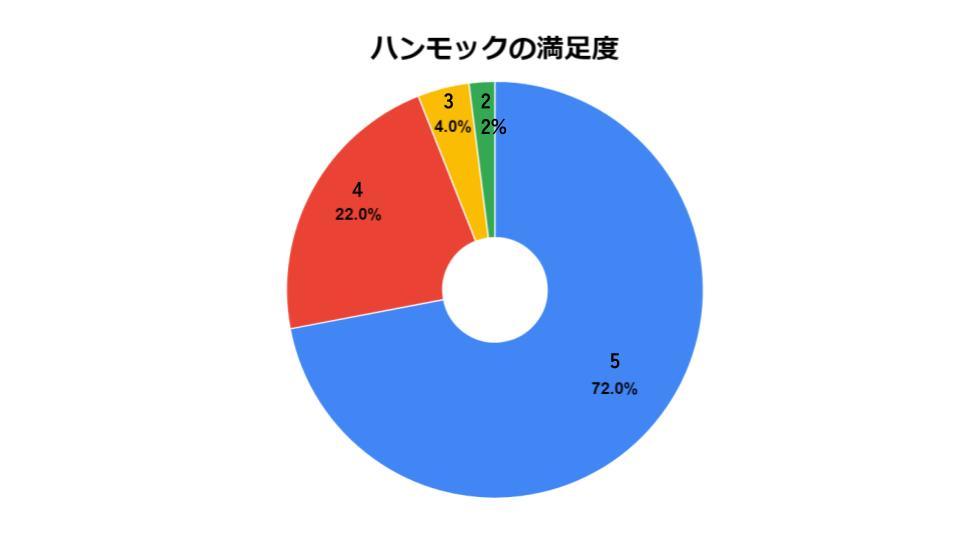 - ハンモック利用満足度(1~5にて満足度を評価)