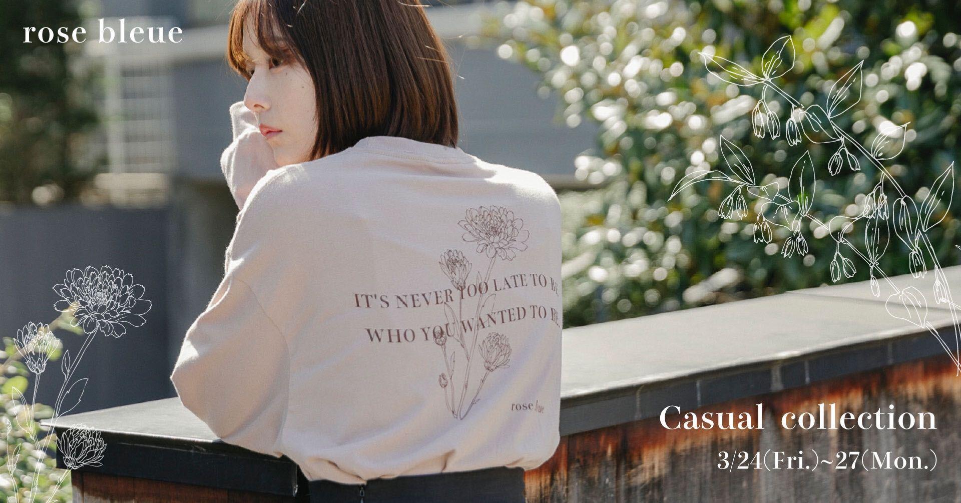 この度、ACROVEのアパレルブランド「rose bleue」(ローズブルー)の、casual flower collection(花咲くシリーズ)のオンライン受注会を期間限定3/24(金)21:00〜 3/27(月)13:00に開催いたします。