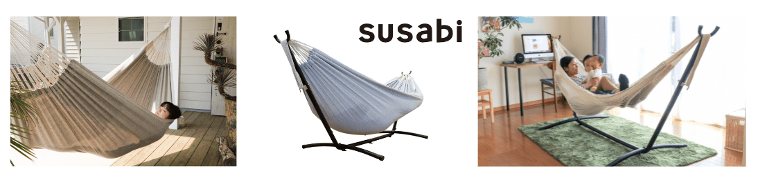 手触りの良い南米の生地を使用したハンモックを販売するsusabiは「こころの余白」を作るきっかけを提供するブランドです。ハンモックという無重力の空間にただ、ただ、身を任せることで、きっとこころが穏やかになる時間を過ごすことができると思います。