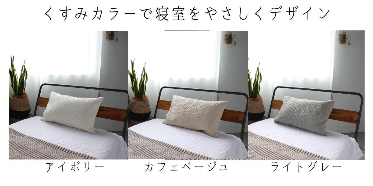 本製品は、ほどよい厚みとお手入れ簡単、夏は涼しく冬はほんのり温かいイブル生地の特性を生かしてオールシーズンご活用いただける枕カバーです。毎日使う寝具だからこそ最も重要視されている、さらりとした優しい「肌触り」※1にもこだわりました。さらに、汗のかきやすいこれからの時期に気になる洗濯も簡単で、家庭で丸洗いが可能です。また、ホルムアルデヒドフリー※2でお肌が敏感な方も安心してご使用いただけます。「寝るのが楽しみになる気持ちよさ」を追求した枕カバーを是非お試しください。