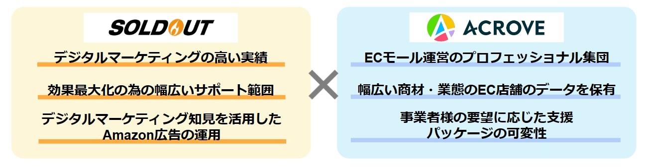 この度連携致しますソウルドアウトは、デジタルマーケティングの知見、実績、そして幅広いソリューションを有しております。またデジタルマーケティングの知見を活用し、Amazonに特化した広告サービスも展開されております。