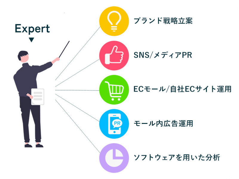 ECオペレーションを熟知した専任エキスパートが、集客から物流まで一気通貫のサポートを提供